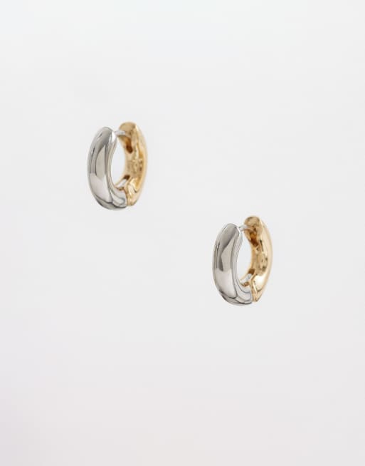 DesignB London mixed metal huggie hoop earrings in gold and silver