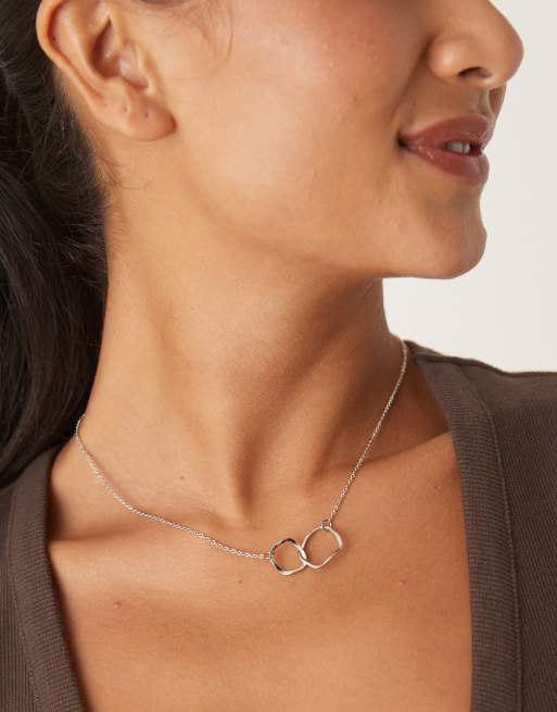 DesignB London molten double link pendant necklace in silver