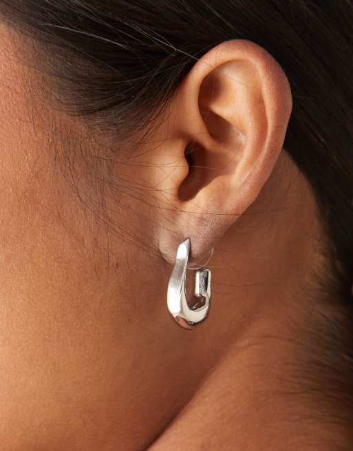 DesignB London molten hoop earrings in silver