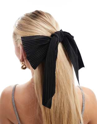 DesignB London oversized plisse hair bow in black