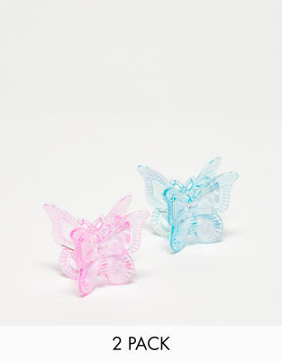 DesignB London pack of 2 iridescent butterfly shape hair clips in pink and blue