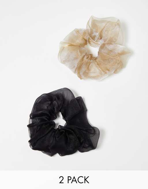 DesignB London pack of 2 organza hair scrunchies in black and gold - MULTI