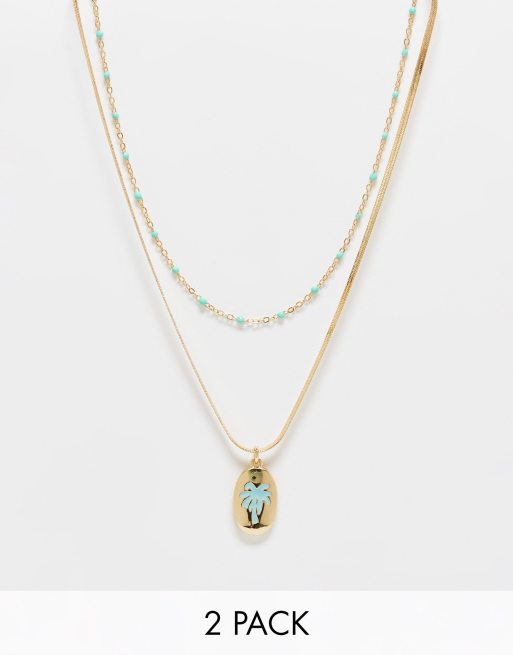 DesignB London pack of 2 palm pendant necklaces in gold
