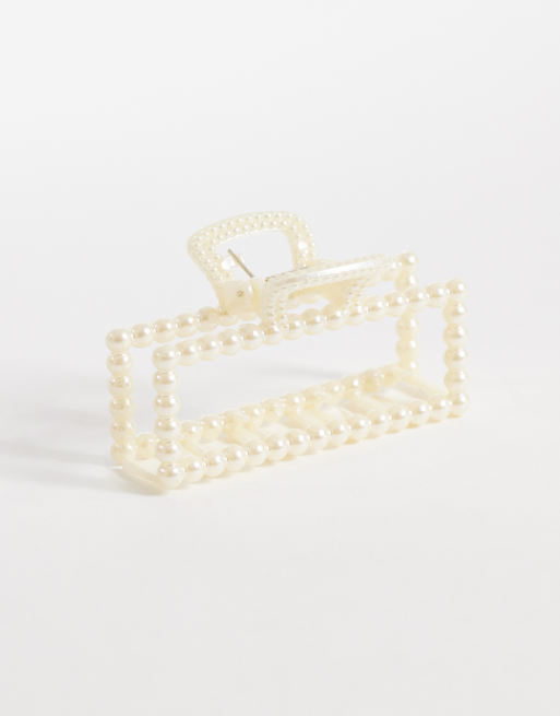 DesignB London pearl embellished hair claw clip in white