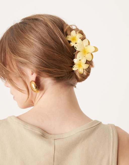 DesignB London triple hawaiian flower hair claw clip in yellow