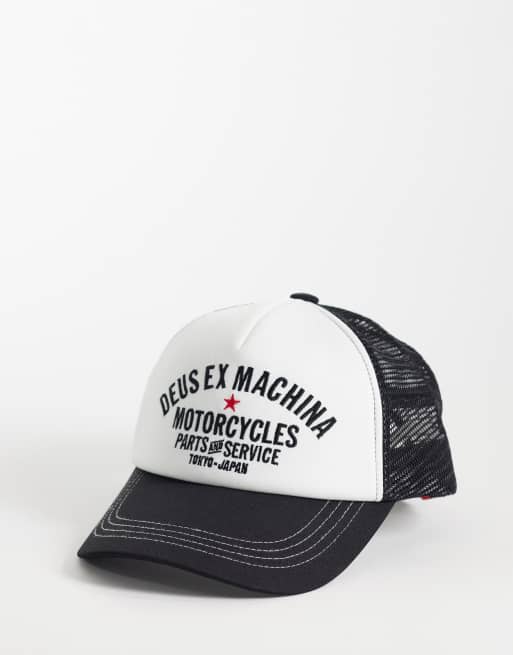 Deus Ex Machina Tokyo original trucker cap with contrast peak in white and black