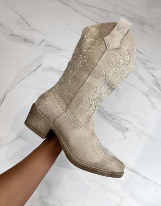 DIA Studios Cowboy western boots in beige faux suede