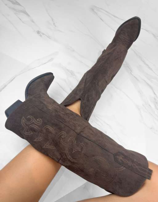 DIA Studios Cowboy western fold over boots in dark brown suede in brown