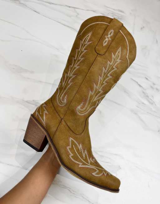 DIA Studios Cowboy western knee boots in tan brown