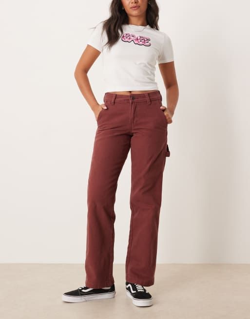 Dickies duck canvas carpenter wide leg trousers in dark burgundy