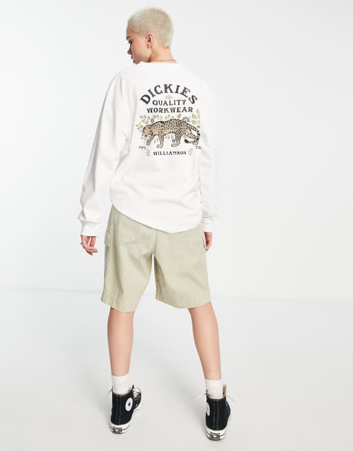 Dickies Fort Lewis back print long sleeve t-shirt in white