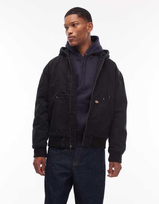 Dickies hilham hooded canvas jacket in black
