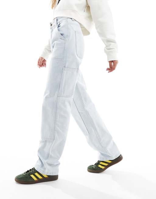 Dickies madison high rise relaxed fit double knee jeans in ultra lightwash blue