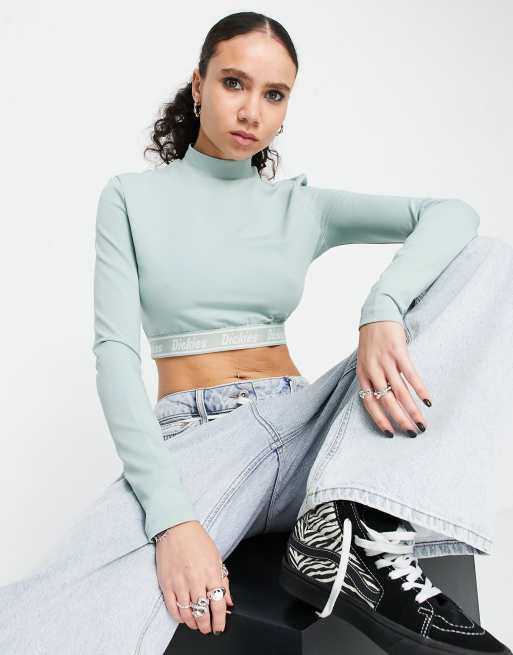 Dickies Petersburg cropped long sleeve t-shirt in jade green