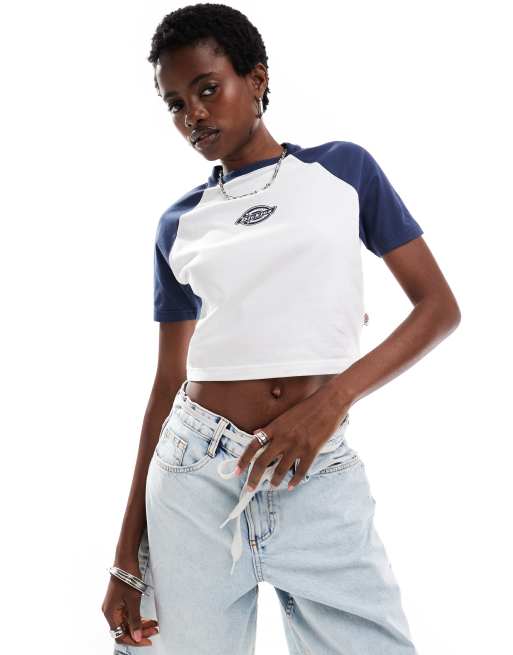 Dickies sodaville short sleeve cropped t-shirt in navy and white- exclusive to asos
