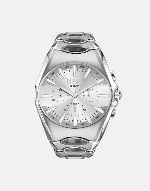 Diesel Men chronograph d-curve, silver stainless steel in silver