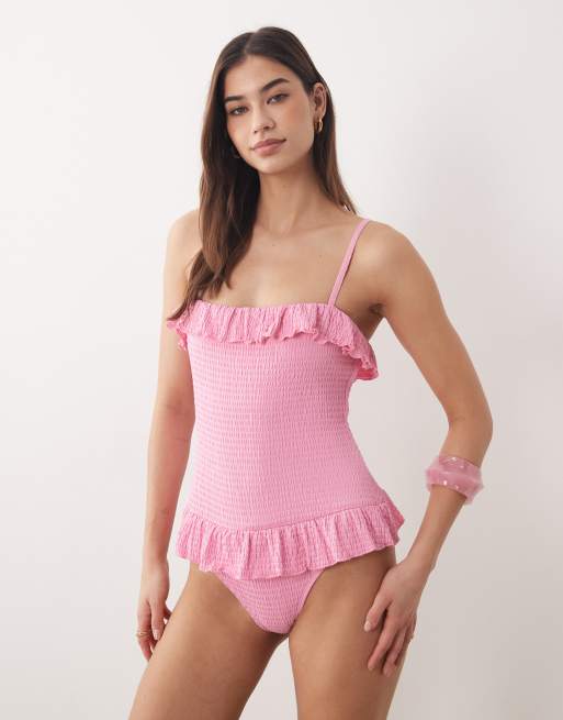 Dippin Daisys swimsuit with frill detail in prism pink