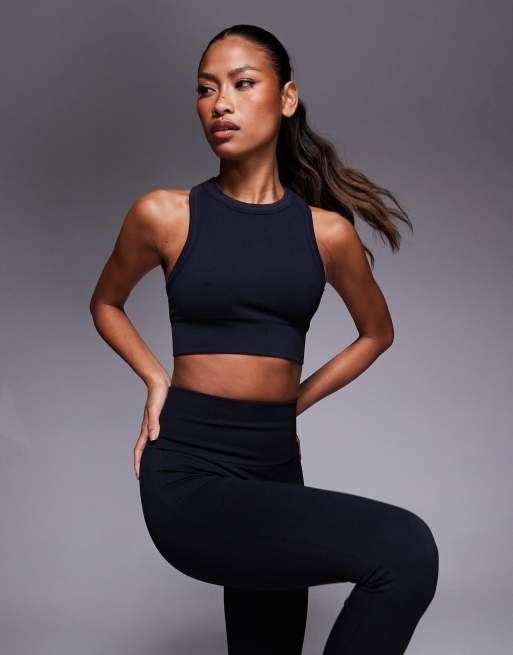 4505 - Active - Sort ribstrikket sømløs sports-BH med støtte i dobbeltlag