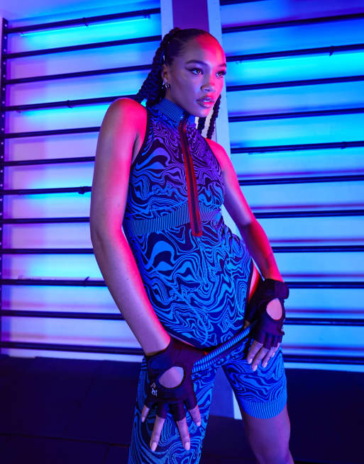 4505 - Blå sømløs bodystocking med digitalt mønster - Del af sæt