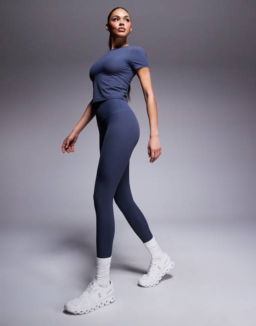 4505 - Blågrå træningsleggings med høj talje i blød ribstrik