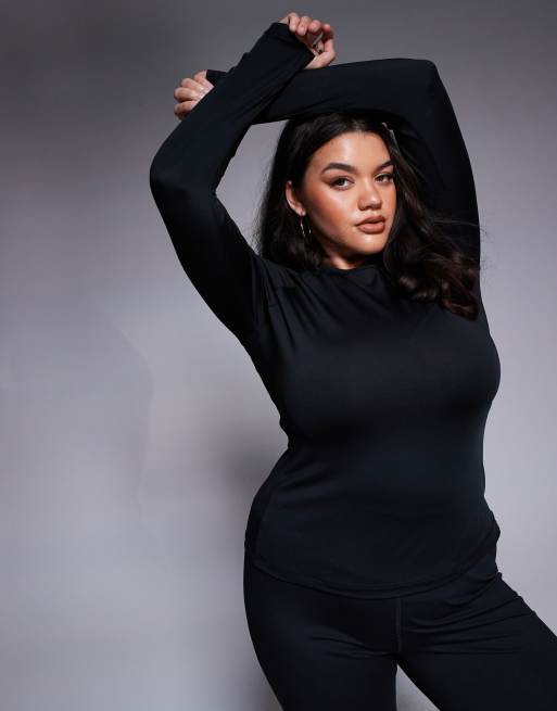 4505 Curve - Icon Active - Sort hurtigttørrende top med lange ærmer i slim fit