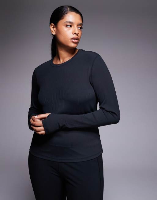 4505 Curve - Sort ribstrikket langærmet opvarmningstop med blød overflade