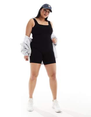4505 Curve - Sort sømløs tætsiddende heldragt med firkantet hals og indbygget BH