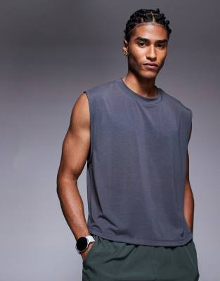 4505 - Grafitgrå hurtigttørrende cropped performance-træningstanktop