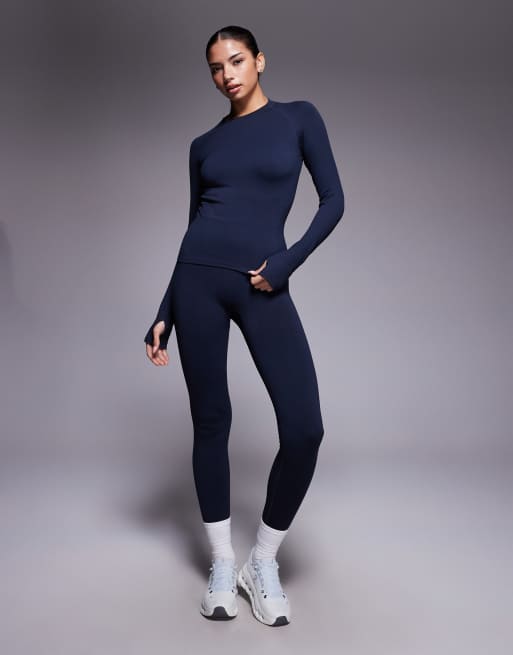 4505 - Indigoblåt og sømløst træningssæt med formgivende effekt