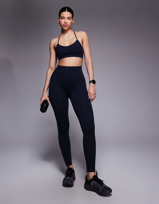4505 - Marineblåt sømløst træningssæt med smalle ribber
