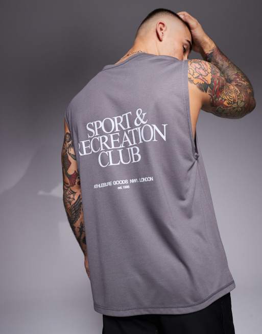 4505 - Metalgrå tanktop med print på ryggen i løstsiddende pasform