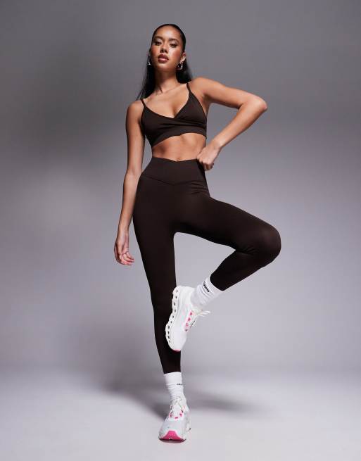 4505 - Mørkebrune sømløse slå-om-træningsleggings med høj talje