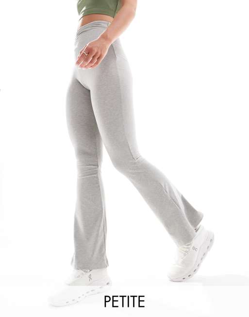 4505 Petite - Gråmelerede, højtaljede og smalle leggings med rynker fortil og svaj i benet