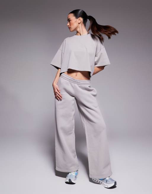 4505 Petite - Icon - Rest Day - Forvaskede grå joggingbukser med brede ben i kraftigt 440 gsm-bomuld