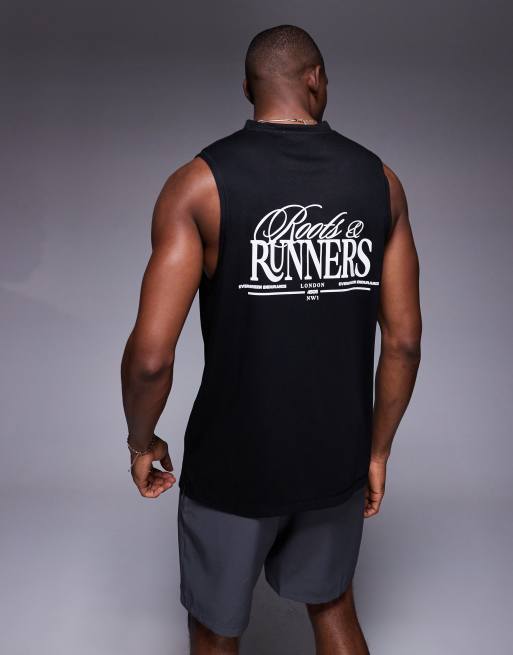 4505 Running - Sort tanktop med løs pasform og print på ryggen i mesh