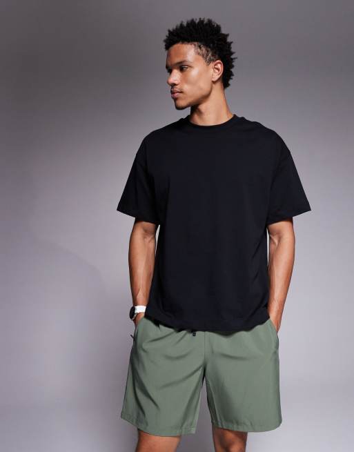 4505 - Sort cropped trænings-T-shirt i kraftig bomuld med hurtigttørrende finish og firkantet pasform