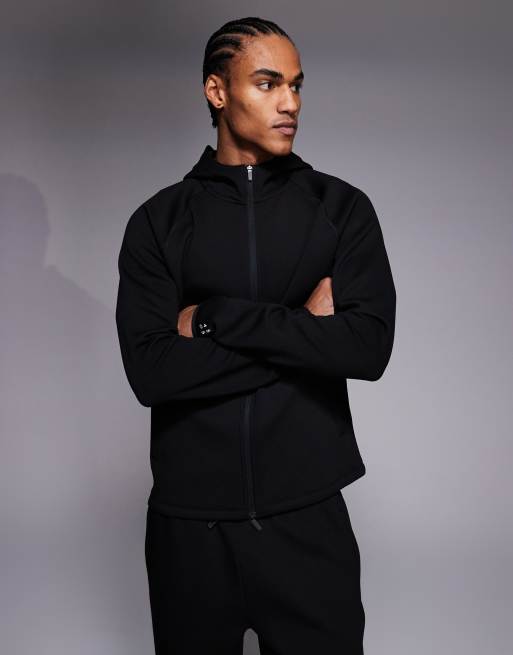4505 - Sort hættetrøje i scubalignende stof med lynlås og lommer