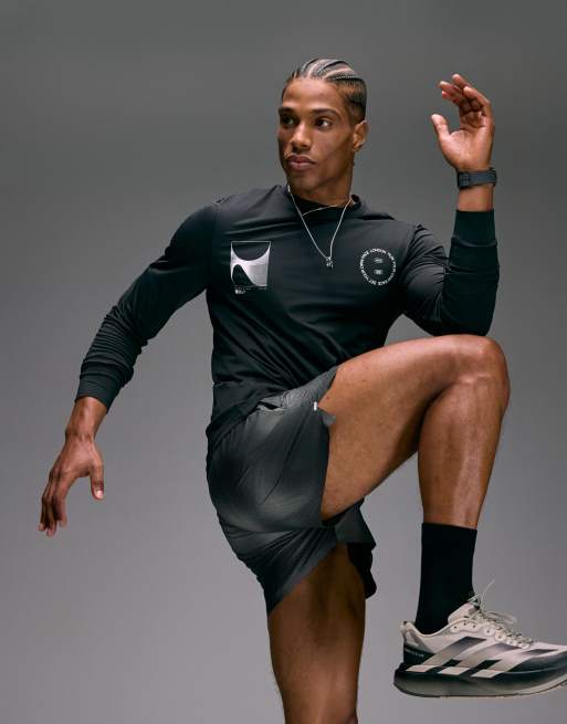 4505 - Sort langærmet løbe-T-shirt i hurtigttørrende nylon og performance-mesh med print .