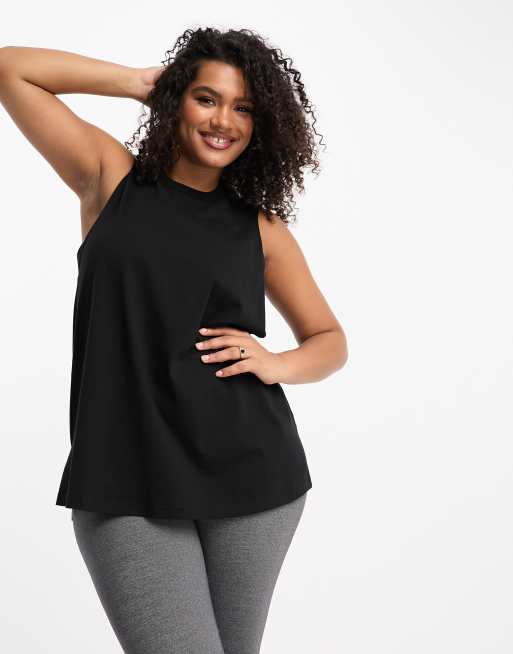 ASOS 4505 Curve - Icon - Sort top med sænket ærmegab i hurtigttørrende bomuld