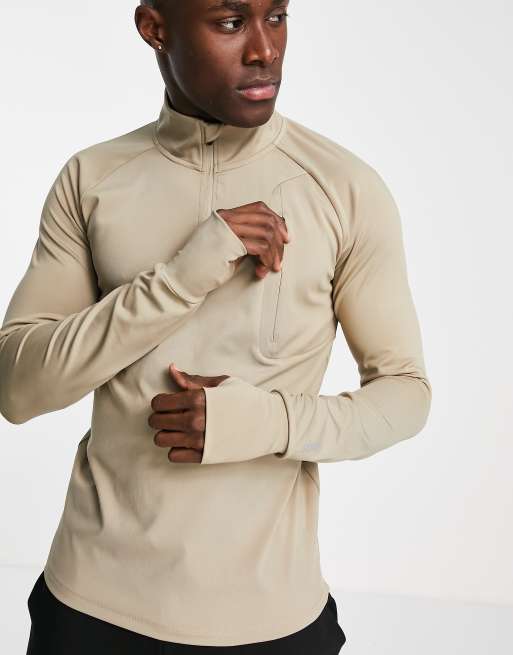 ASOS - 4505 Icon - Tætsiddende trænings-sweatshirt med 1/4 lynlås i beige