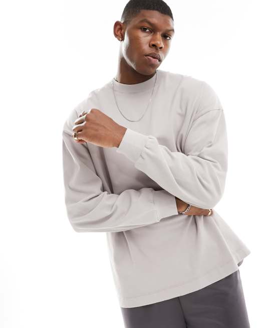 ASOS 4505 - Kraftig og oversized T-shirt med lange ærmer og firkantet pasform i grålilla vask