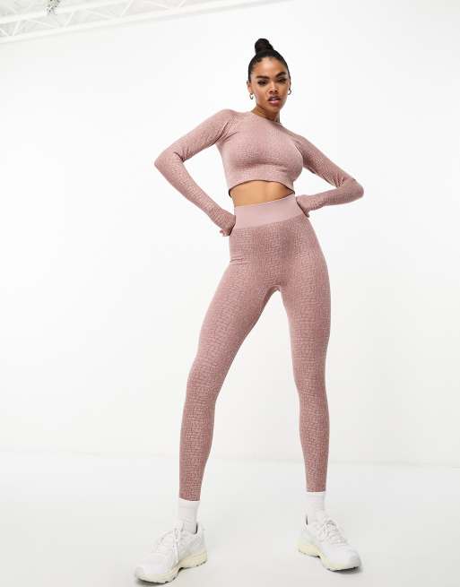 ASOS 4505 - Sømløse leggings med krokodillemønster og slå-om-talje i minkfarvet jacquard