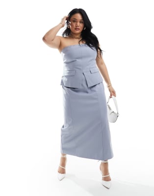 4th & Reckless Plus - Blåt sæt med skræddersyet bandeau-top og maxinederdel - Kun hos ASOS