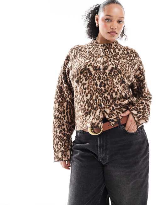 4th & Reckless Plus - Strikket cardigan med knapper og leopardprint