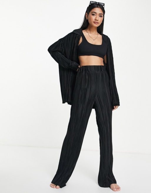 4th & Reckless - Astin - Sort strandsæt med plisseret skjorte