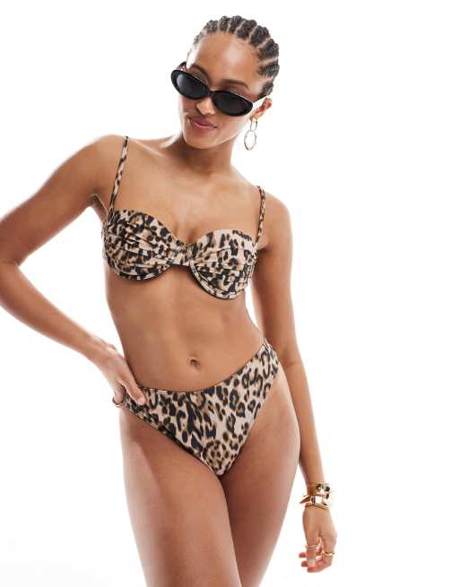 4th & Reckless - Bikinitrusser med høj benskæring og leopardprint - Del af sæt