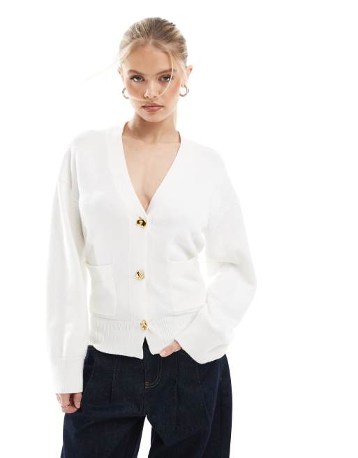 4th & Reckless - Cremehvid cardigan med struktur, V-hals og guldfarvede knapper