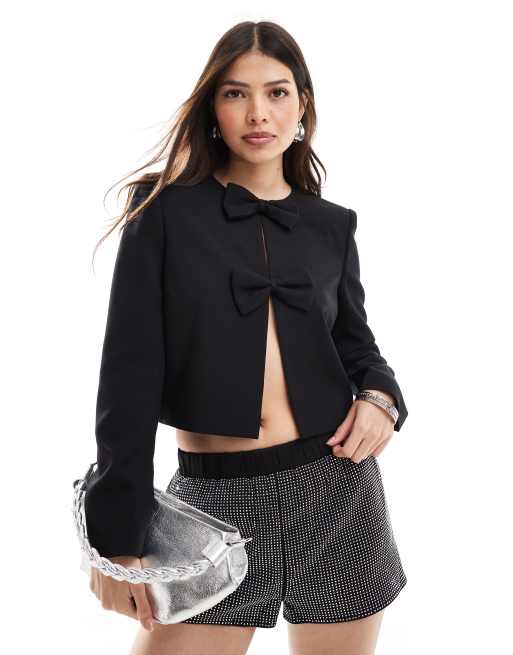 4th & Reckless - Sort jakke med firkantet pasform og sløjfedetalje
