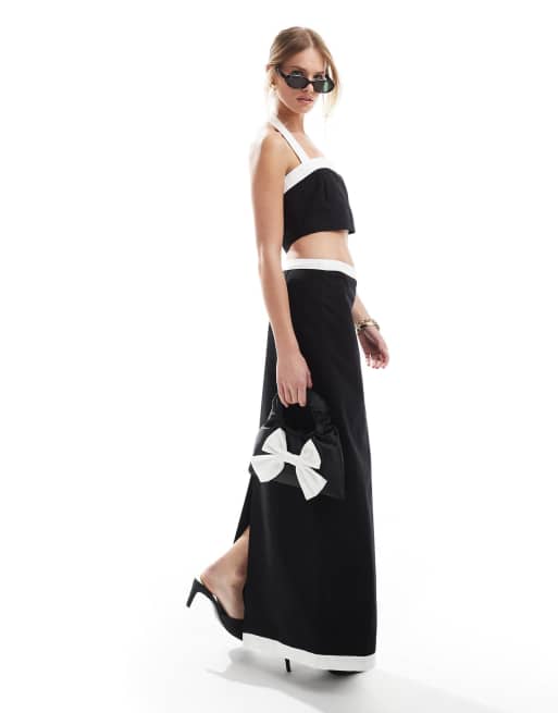 4th & Reckless - Sort maxinederdel med hvide kontrastkanter i hørlook - Del af sæt