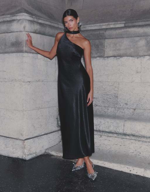 4th & Reckless - Sort oneshoulder-maxikjole med draperet tørklædedetalje i satin